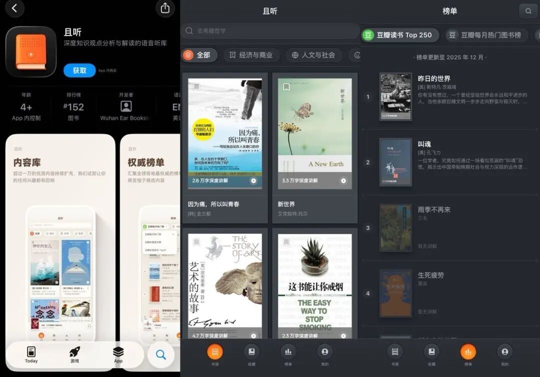 细红线的可发布新品也在本次活动上正式亮相——且听,一个AI时代深度解读分析好书的语音听库。“近期做的小软件”,目前已经可以在应用商店下载。