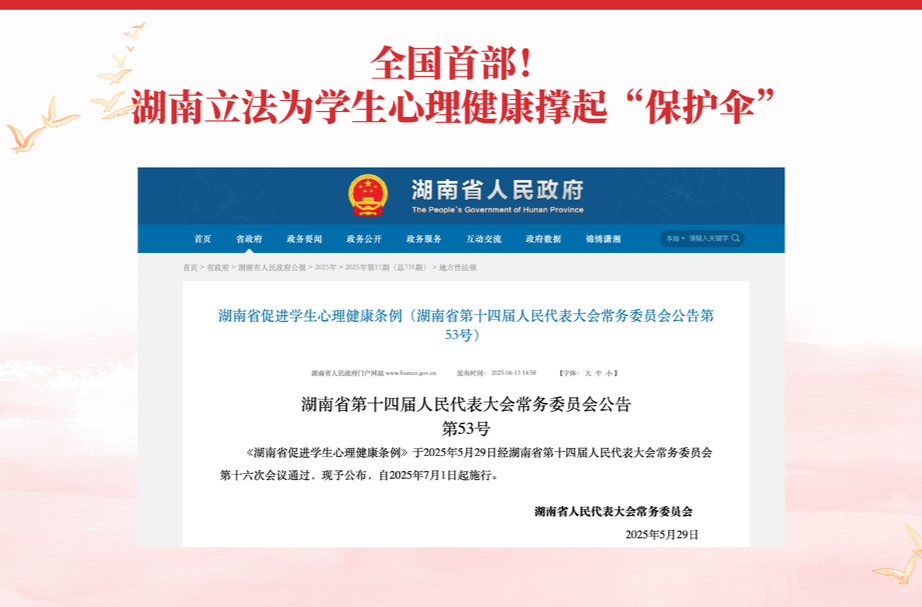 5.全国首部!湖南立法为学生心理健康撑起“保护伞”